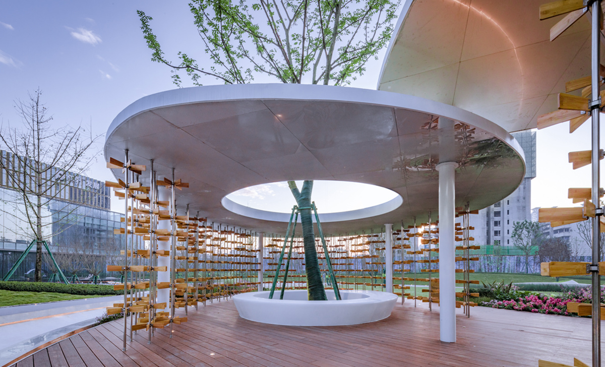 保利時(shí)代首開區(qū)以一顆發(fā)芽的、向上生長(zhǎng)的種子為序幕,演繹富有生命情感的三大空間進(jìn)程,打造出根系廣場(chǎng)、種子客廳以及漂浮水景三大景觀。